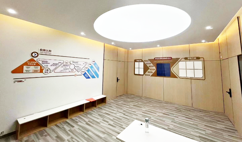 学生发展指导中心是学校开展指导工作的载体,通过空间设计,落地学生发展指导工作。校内学生发展指导中心可满足学生教育中的生涯、心理、学业、生活、理想等多元化教育需求。校外生涯教育基地承载研学、游学等功能,为学生提供专业化体验。